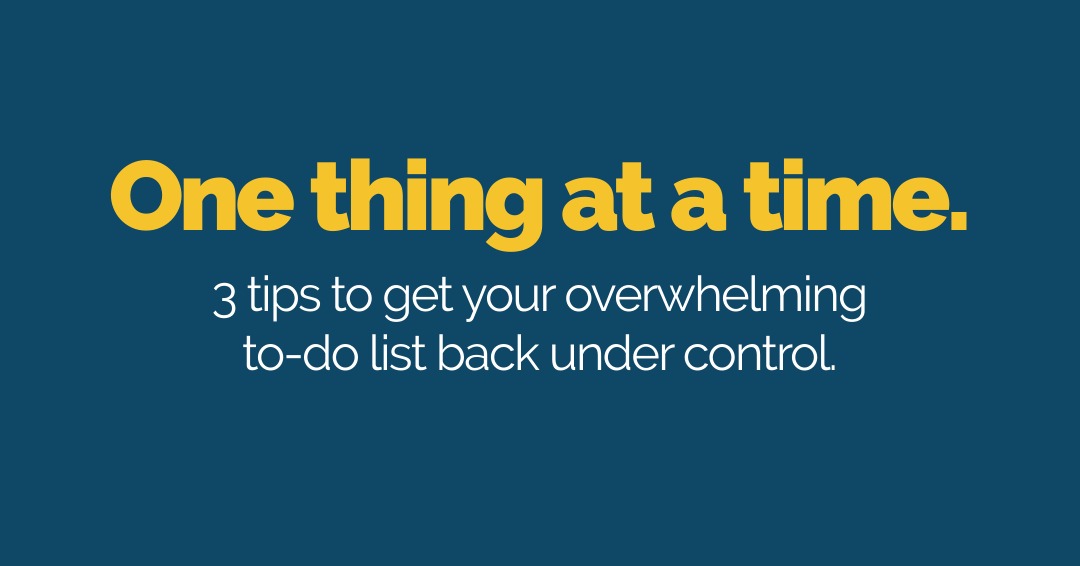 Burning the candle at both ends is not sustainable for long, so when the going gets tough, I fall back on one important survival technique: one thing at a time. Here is one tactical way I personally accomplish that. Maybe something here can help you put a stop to the overwhelm and get your focus back on track, too.